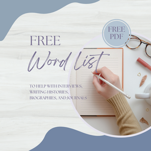 My whole goal is for you to research family history for free, on your own. This word list is perfect for triggering memories and stories to record for future generations!